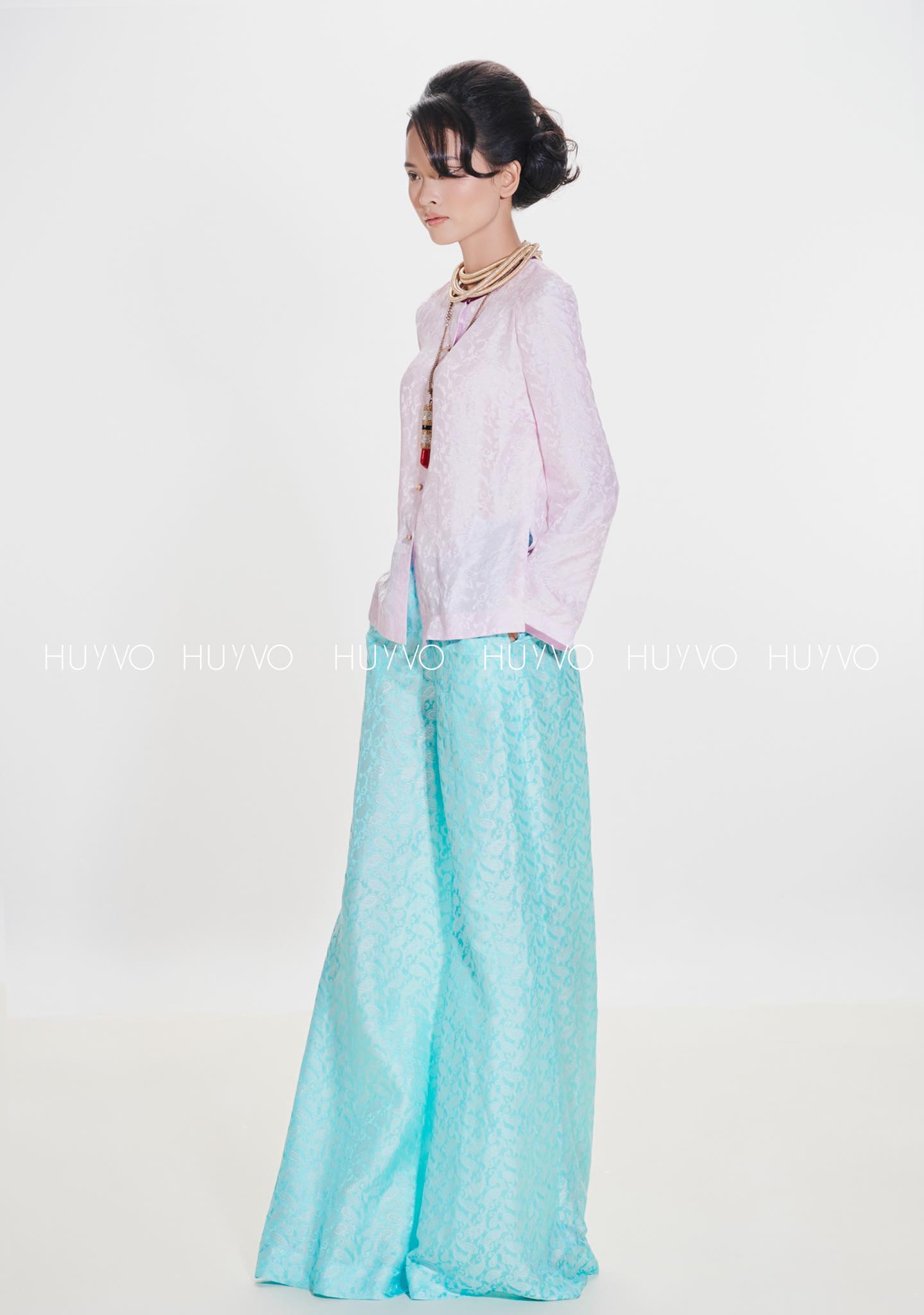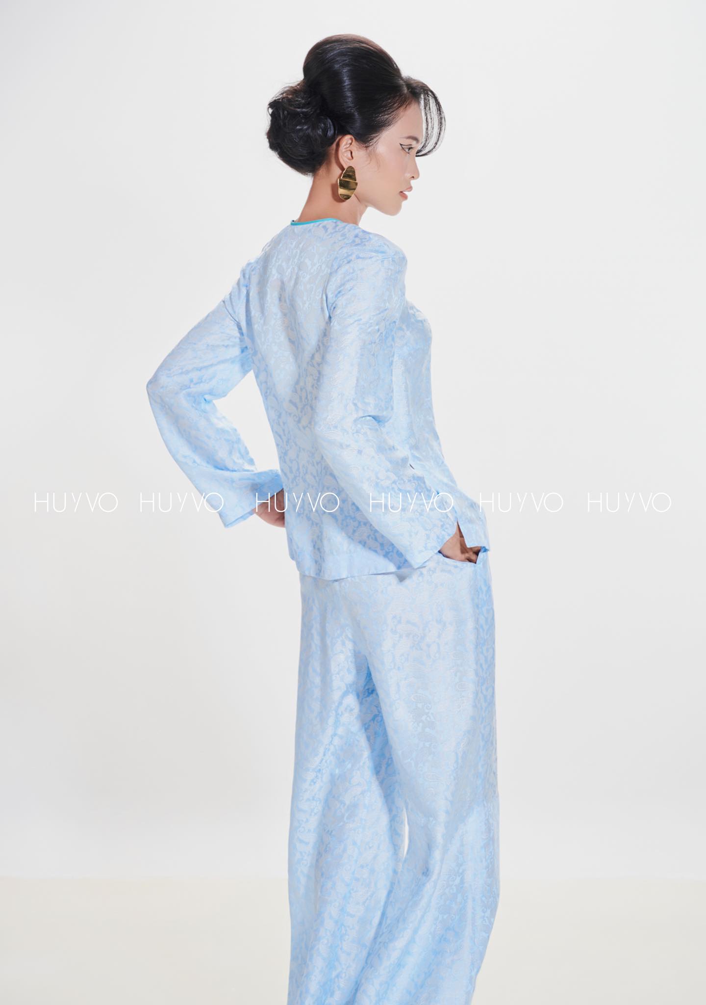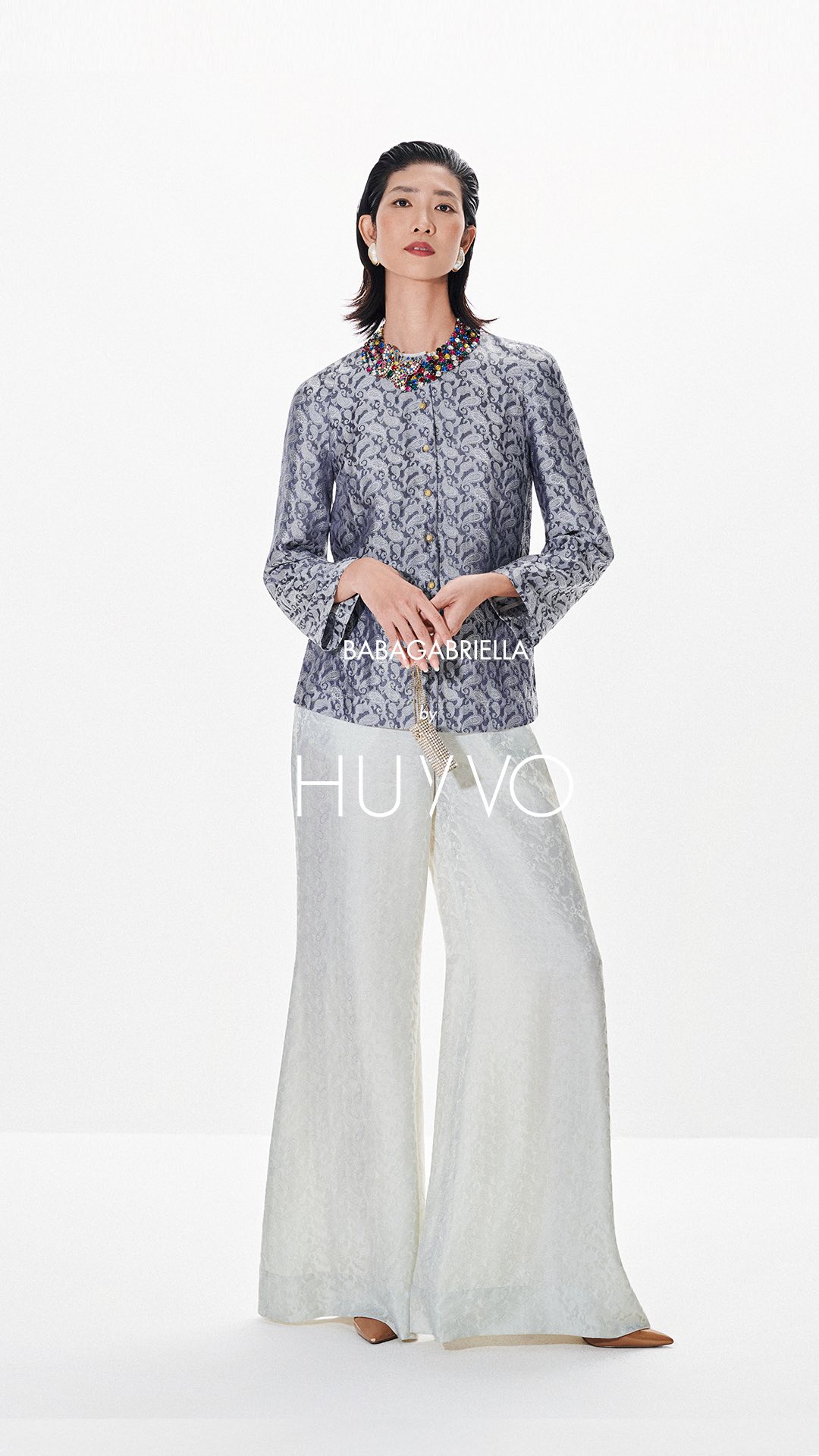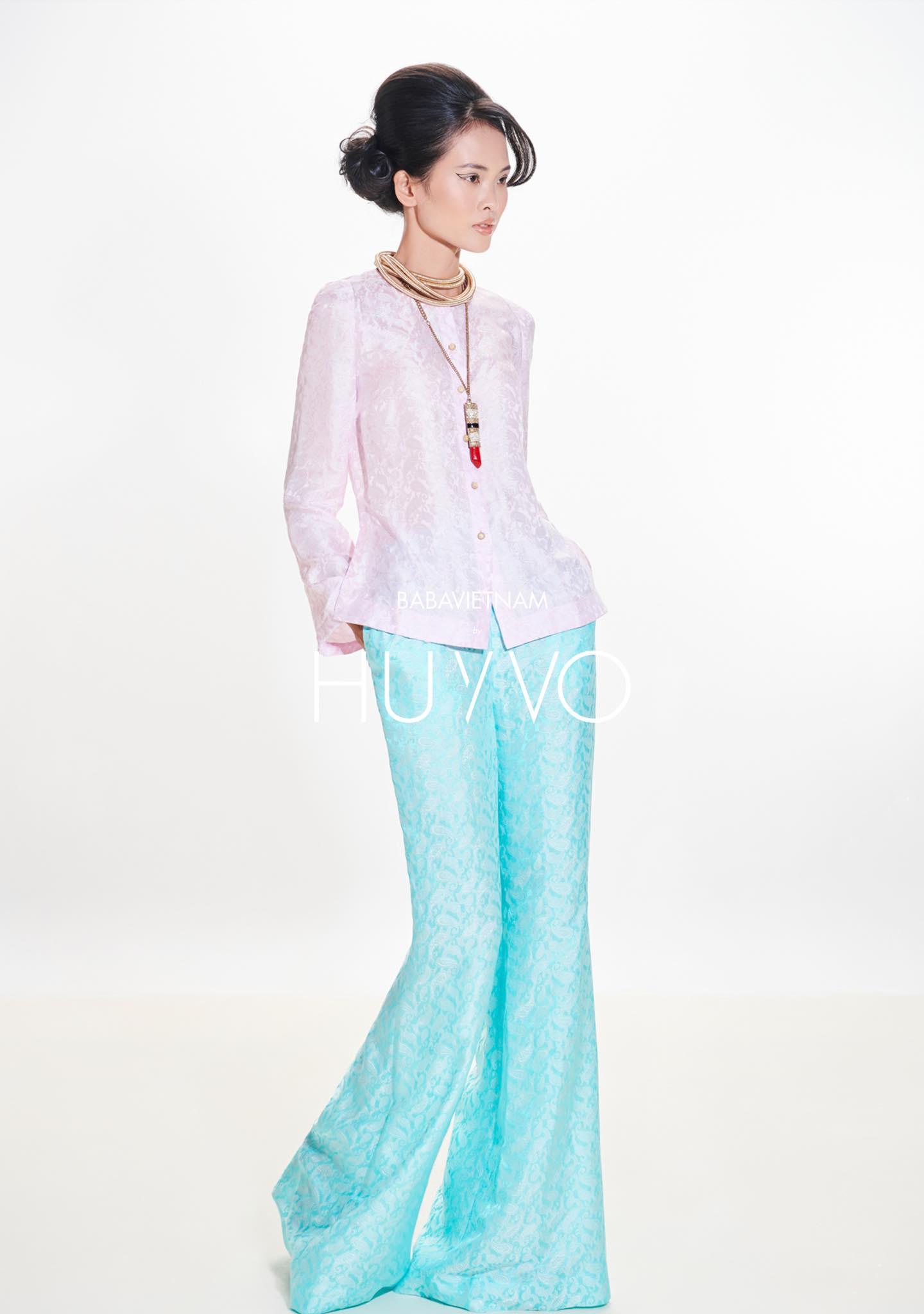 Bà Ba Mademoiselle là phiên bản cách tân của chiếc áo bà ba miền Tây, dịu dàng, duyên dáng nhưng đầy khí chất, vốn là sản phẩm của giao thoa văn hoá trong lịch sử giao thương vùng Nam Bộ. Huy Võ tái hiện lại với những đường cắt hiện đại, phom dáng chuẩn chỉnh và chất liệu cao cấp được lựa chọn kỹ lưỡng. Thiết kế giữ trọn vẻ chân phương mộc mạc của nguyên bản, nhưng được nâng cấp bằng tinh thần thẩm mỹ đương đại và kỹ thuật thủ công chỉn chu.
