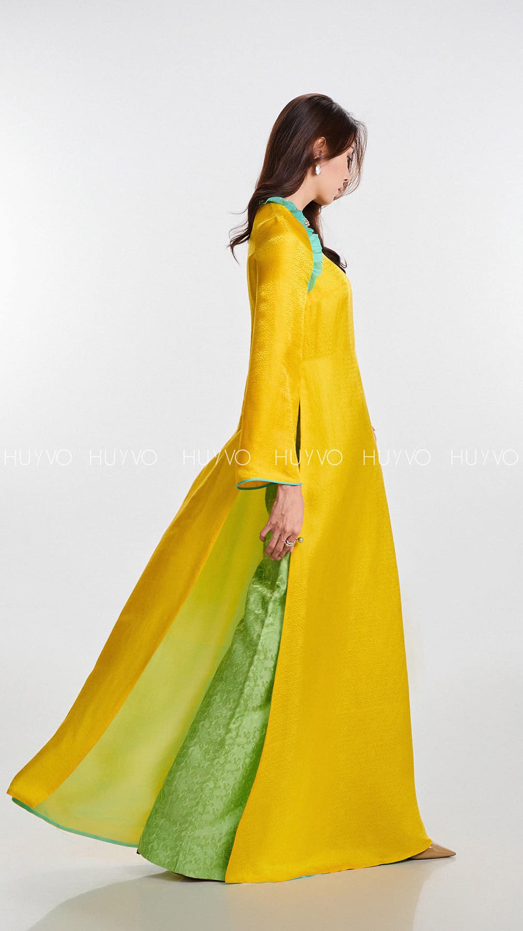 Thẩm mỹ đặc trưng của Huy Võ được thể hiện qua từng thiết kế: tôn vinh vẻ đẹp tự nhiên, duyên dáng và đầy phẩm giá của người phụ nữ Việt, như một biểu tượng của sự thanh lịch vượt thời gian trong kỷ nguyên mới của thời trang xa xỉ Việt Nam