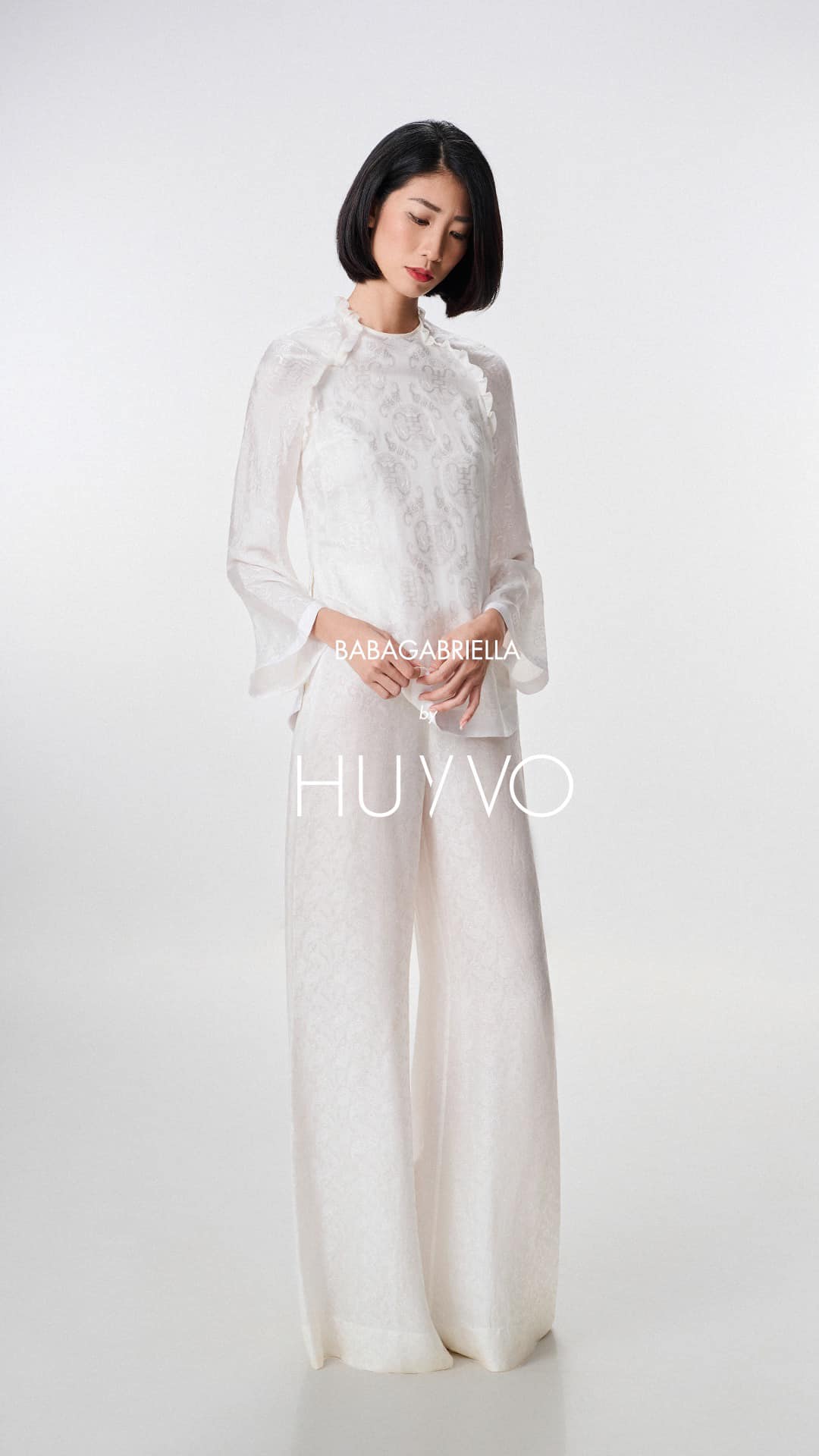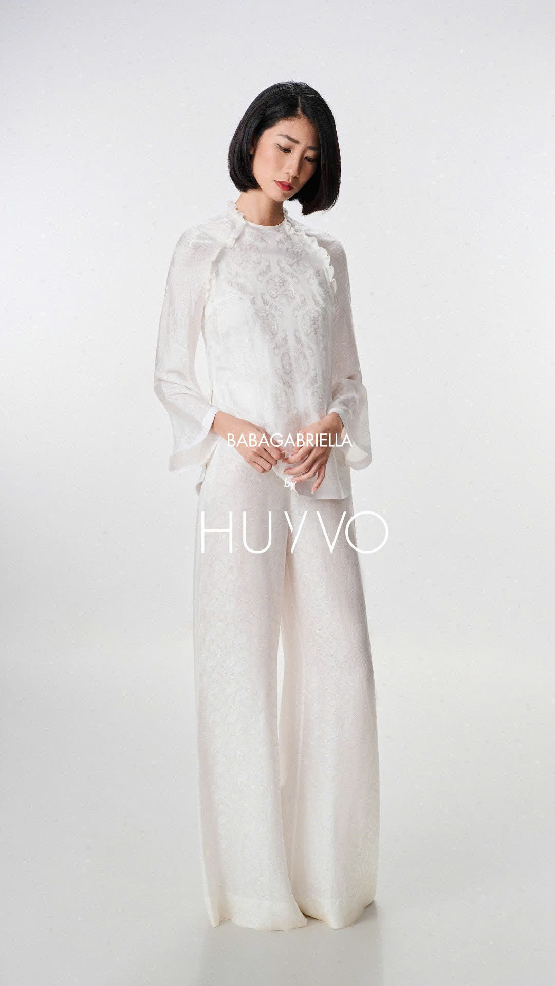 Áo Bà Ba Gabriella là sự hòa quyện đầy tinh tế giữa vẻ đẹp truyền thống Việt Nam và tư duy thiết kế đương đại. Lấy cảm hứng từ vẻ đẹp kín đáo, nền nã của người phụ nữ Á Đông, thiết kế sử dụng sắc trắng tinh khôi làm chủ đạo biểu trưng cho sự thanh thuần, sang trọng và vượt thời gian.