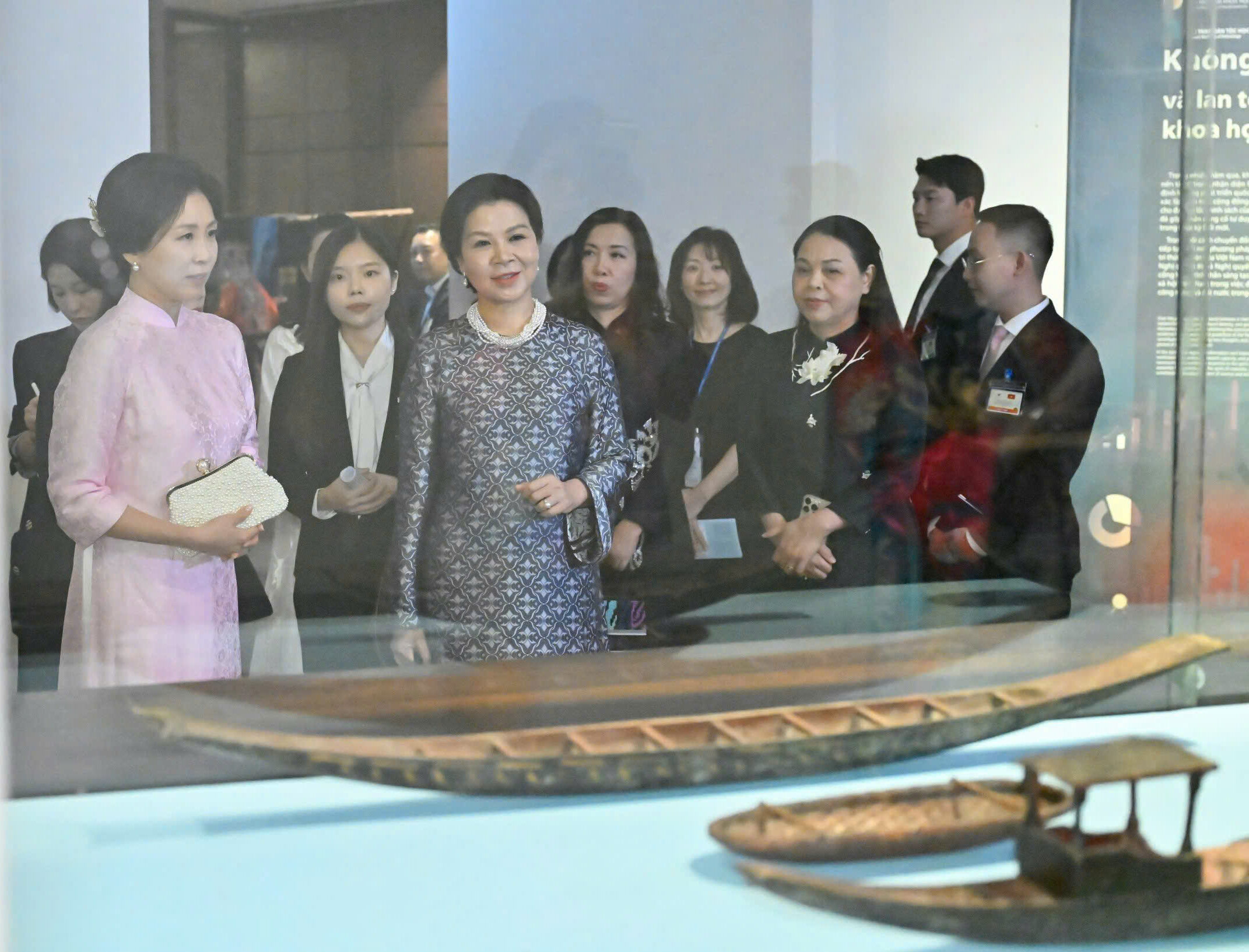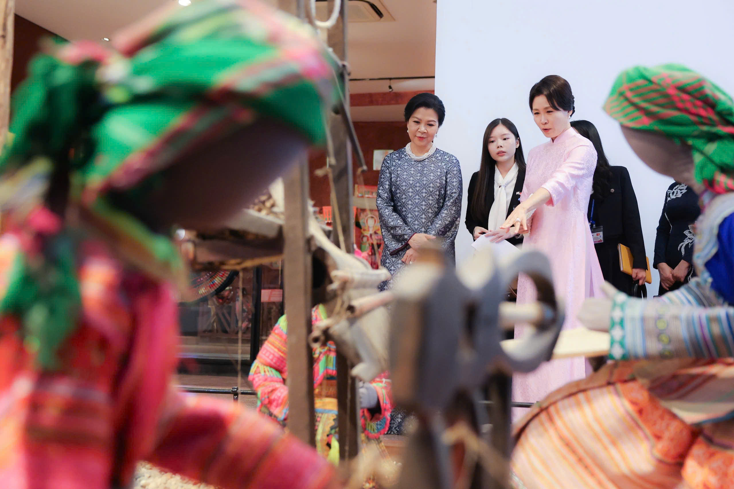 HUY VO trân trọng và vinh dự khi thiết kế #AoDaiMadame được Phu nhân Ngô Phương Ly tin tưởng lựa chọn trong sự kiện đối ngoại gặp gỡ bà Kim Hye Kyung – Phu nhân Tổng thống Đại Hàn Dân Quốc Lee Jae Myung, nhân dịp tham quan Bảo tàng Dân tộc học Việt Nam.