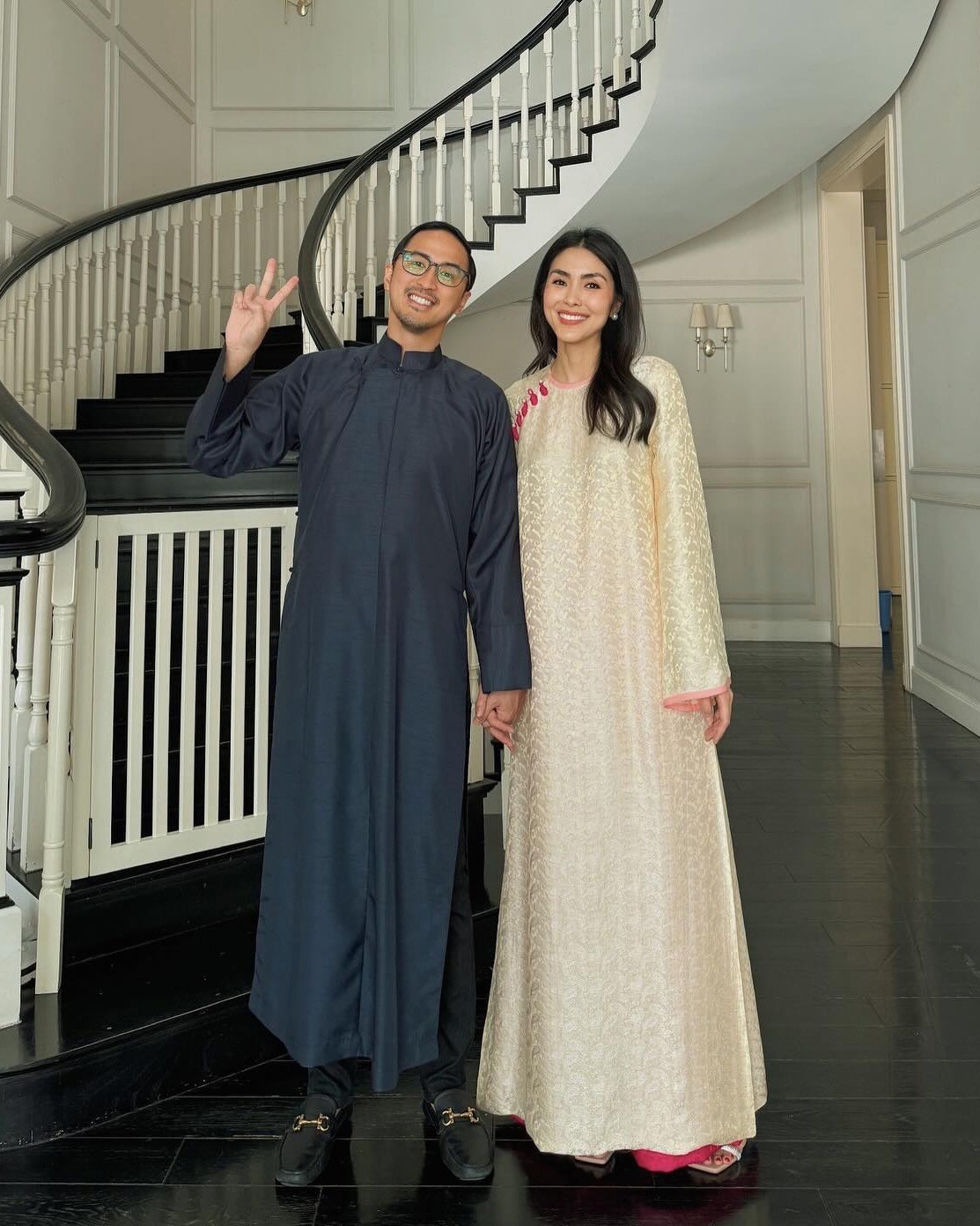 Sự kết hợp giữa các gam màu độc bản như cam nhạt và vàng không chỉ thể hiện khả năng làm chủ màu sắc của NTK Huy Võ, mà còn phản chiếu tư duy thẩm mỹ đa tầng của người mặc. Với HUY VO, một họa tiết di sản không đứng yên như một bảo vật trong lồng kính; nó phải sống, phải đối thoại và phải trở nên chuẩn xác trong không gian hiện đại. Dưới phong thái của Tăng Thanh Hà, những giá trị cũ được khoác lên mình một diện mạo mới: tinh giản hơn, bản lĩnh hơn và đầy chiều sâu tri thức.